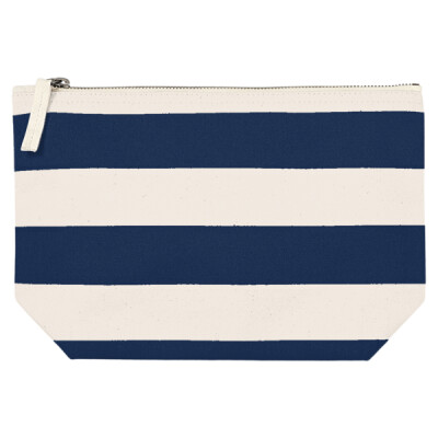 Printed stripe design. Zippered closure. Multi-purpose use. Durable canvas construction.