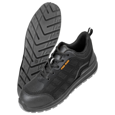 CE EN 20345:2011 SRA SB. Breathable. Durable. Lightweight. Low cut sports look. Ventilating mesh and lining wicks away moisture. Injection show moulds for this style are same for men and women; size range therefore starts with women's and runs through into men's. Padded tongue and collar. Energy absorption heel. Moulded PU scruff cap. SRA slip resistance. Spare insole set. Steel toecap. Oil resistant. Heel loop.